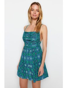 Trendyol Green A-line Mini tkana cvetlična obleka z oknom/izrezanimi detajli