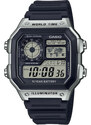 Ure od znamke Casio. Barva Modra . Koda izdelka: AE-1200WH-1CVEF. Casio Collection AE-1200WH-1CVEF so moške digitalne ure z retro dizajnom, ki združujejo stil in funkcionalnost. Te ure ponujajo funkcije, kot so štoparica z natančnostjo 1/100 sekunde, odštevalnik časa, 5 dnevnih alarmov in svetovni čas za 48 mest. Z vodoodpornostjo do 100 metrov so primerne za plavanje in šnorchlanje. Casio Collection AE-1200WH-1CVEF so zanesljive ure z retro videzom, ki nudijo širok nabor funkcij za aktivne moške.Material Sestava: Kovina Podrobnosti Koda izdelka: AE-1200WH-1CVEFMade in China Velikostna tabela