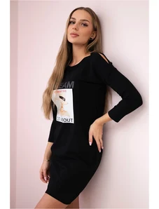 We present you a fashionable dress. The dress has a decorative belt. A perfect item for everyday use. The dress is made of high-quality insulated material. The size is universal and will be suitable for ladies in sizes M, L or XL