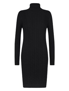 This elegant women's dress is the perfect choice for cooler days! Made from stretchy, ribbed material, it beautifully fits the silhouette, accentuating feminine shapes. The dress features a trendy turtleneck that provides comfort and warmth, as well as decorative gold buttons on the side that add a unique character. The midi length and subtle slit at the bottom make it both stylish and comfortable.