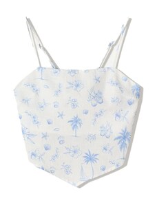 Bershka Top nebeško modra / bela