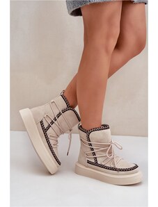 Boto PH2 Women's Snow Boots With Embroidery On Platform Light Beige Naleris