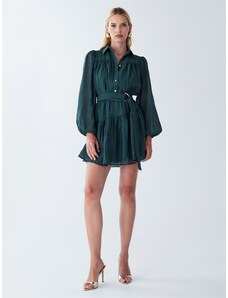 Elegance, comfort, and modern style all in one! This olive shirt dress by Numoco is the perfect choice for work, meetings, or everyday outings. The shirt dress style with a classic collar, buttons, and tie belt at the waist beautifully accentuates your silhouette, providing freedom of movement and a stylish look. Long sleeves and a timeless cut make this dress suitable for year-round wear.