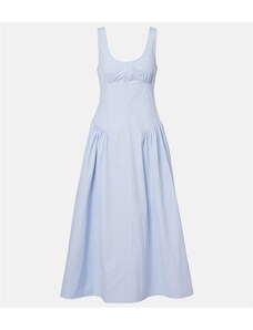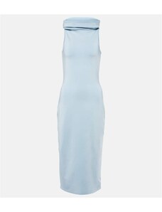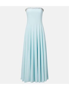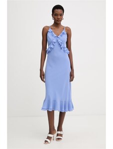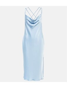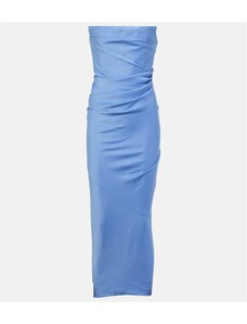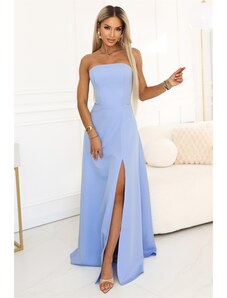 Ta nebesno modra midi obleka čudovito poudari vašo postavo zaradi korzetnega kroja in oprijete silhuete. Brez naramnic doda lahkotnost in samozavest, idealna za formalne dogodke, kot so poroke ali večerje. Zavezan pas z pentljo in razpor na hrbtu dajeta obleki eleganten in romantičen pridih. Izdelano na Poljskem pri podjetju Numoco.