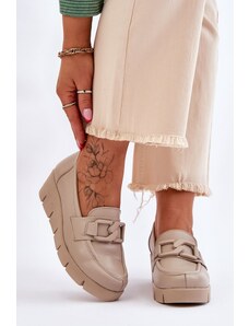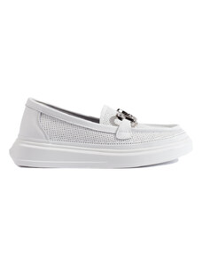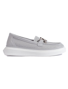 Moccasins made of breathable material with a delicate perforated pattern, providing comfort and air circulation inside the shoe. The decorative buckle on top adds elegance, and the platform along with a subtle wedge ensures comfort while walking. These moccasins are a great choice for women who appreciate the combination of functionality and stylish appearance. When choosing a size, please refer to the size chart.