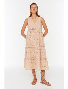 A dress that will complete your elegance both day and night with its midi length cut; It offers a natural and comfortable use thanks to its linen-look woven fabric; It provides a feminine and elegant look with its Carmen collar design; It is ideal for everyone with its wide range of use that appeals to all age groups; Regular fit maintains its stylish stance while offering freedom of movement; It provides comfortable use all day long thanks to its elasticated waist structure; While adding a modern and stylish touch with gimped details, the balloon sleeve design provides a trendy look; Short sleeve length is ideal for the summer months and keeps you cool; The woven fabric type promises long-term use by increasing durability; It creates an elegant silhouette by perfectly adapting to your body lines with its skater silhouette;