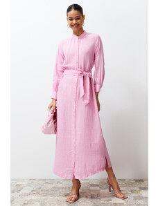 Trendyol roza pasasta srajca tkana obleka