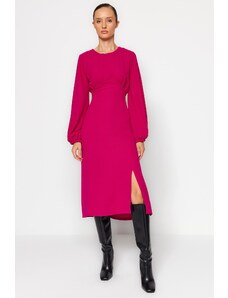 Trendyol fuchsia Odpiranje pasu Midi voluminozni rokav Podrobna tkana tkana obleka