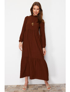Trendyol rjava stoječa ovratnica potresemo široko prilegajočo se tkano obleko