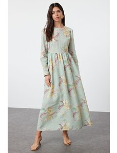 Trendyol Mint Floral Linen Look Woven Dress