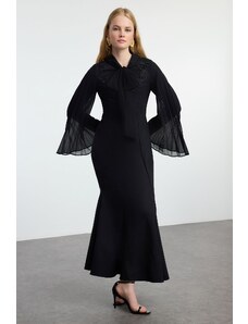 Trendyol Black Embroidered Detailed Chiffon Sleeve Woven Evening Dress