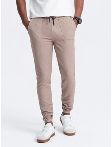 Ombre Clothing Trendovska pletena trenirka v barvi kave V2 PASK-0211
