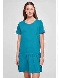 The wide cut and simple yet effective design of this women's t-shirt looks amazingly feminine. Short sleeves, loose fit and deep round neckline are reminiscent of the shape of a famous T-shirt. The steering wheel approach of the skirt creates a subtle accent. Just as easy as the cut is the material of the women's dress, which consists of a smooth single jersey.