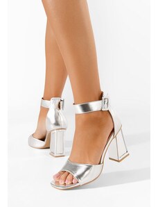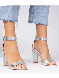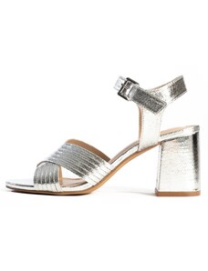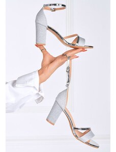 Gemre Silver block heel sandals with ankle strap Miledia