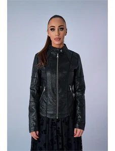 Just-R JAKNA IZ IMITACIJE USNJA - Črna, S