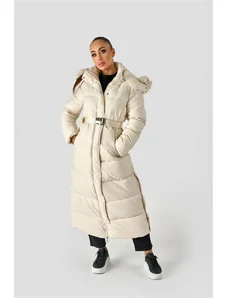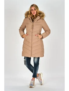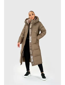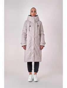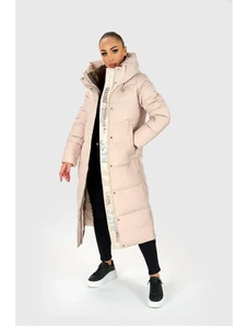 Just-R ŽENSKA DOLGA PUHOVKA Z VELIKO KAPUCO - Bež, S