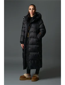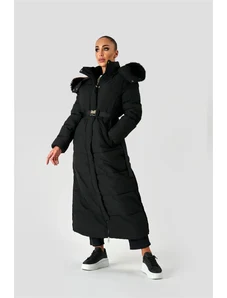 Just-R IKONIČNA ZELO DOLGA PUHOVKA S KAPUCO - Črna, S