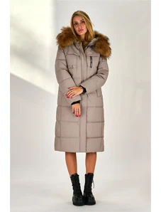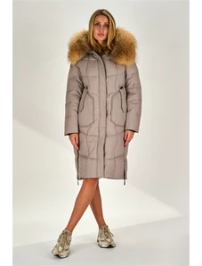 Just-R DOLGA PREŠITA JAKNA Z LISJAKOVIM KRZNOM IN ZADRGO - Bež, S