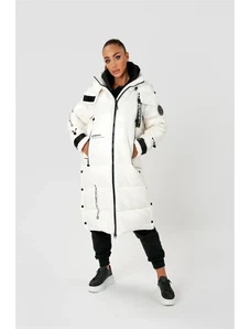 Just-R DOLG PLAŠČ Z VELIKO KAPUCO IN POTISKI - Bela, S