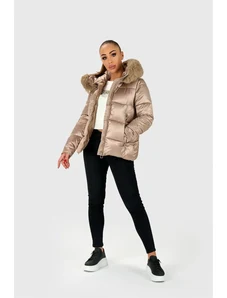 PREŠITA JAKNA JUST-R Z UMETNIM KRZNOM - Bronz, S