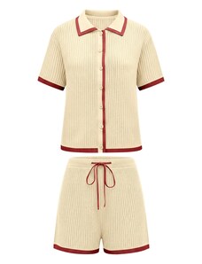 Imily Bela Hlačni kostim bež / temno rdeča