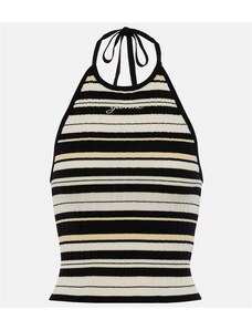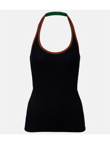 Ganni Logo ribbed-knit halterneck top