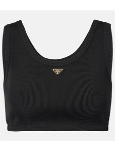Prada Logo ribbed-knit jersey crop top