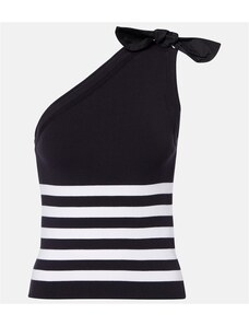 Patou Striped one-shoulder cotton-blend top
